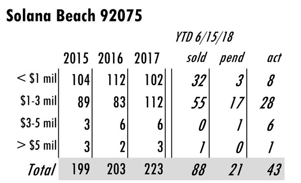 JULY Issue Solana Beach total MLS reported sales, active listings, month’s inventory supply, and median sales price** compared to the same period last year.