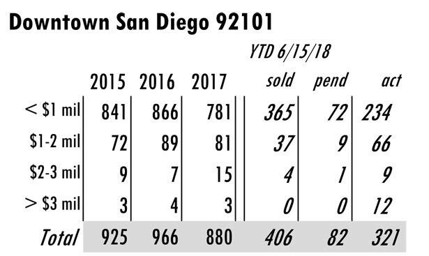 JULY Issue Downtown San Diego total MLS reported sales, active listings, month’s inventory supply, and median sales price** compared to the same period last year.