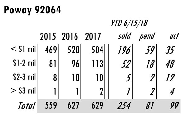 JULY Issue Poway total MLS reported sales, active listings, month’s inventory supply, and median sales price** compared to the same period last year.