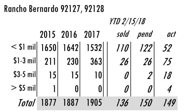Based on MLS data from these zip codes, 92067,92091,92014,92037,92130,92118,92024,92127,92128, 92008,92009,92010,92011,9075,92064,92101 for the period of 1/1/2004 – 1/15/2018.