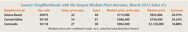 *Based on MLS data from these zip codes, 92067,92091,92014,92037,92130,92118, 92024,92127,92128 for the period of 1/1/2013 – 4/15/2013.