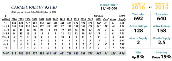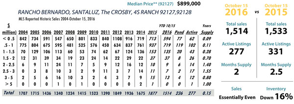 Based on MLS data from these zip codes, 92067,92091,92014,92037,92130,92118,92024,92127,92128, 92008,92009,92010,92011,9075,92064,92101 for the period of 1/1/2004 – 10/15/2016.
