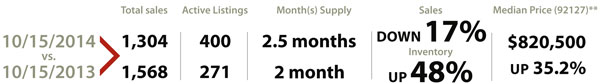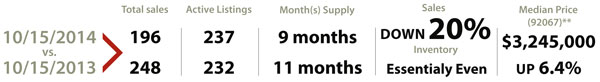 *Based on MLS data from these zip codes, 92067,92091,92014,92037,92130,92118, 92024,92127,92128 for the period of 12/31/2013 – 10/15/2014.