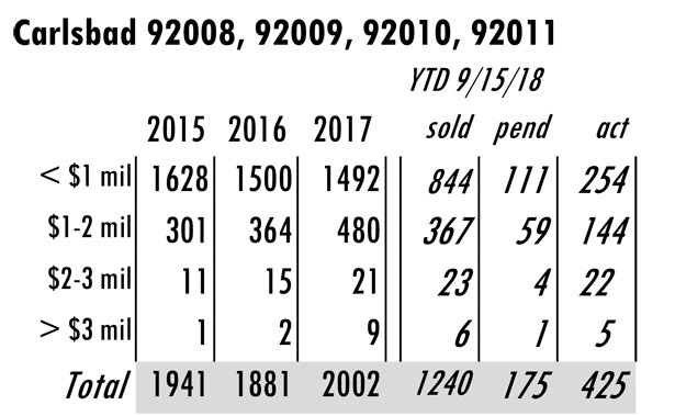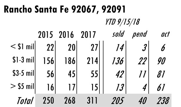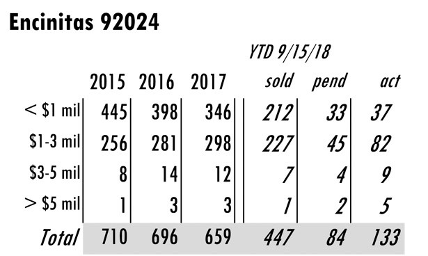 Based on MLS data from these zip codes, 92067,92091,92014,92037,92130,92118,92024,92127,92128, 92008,92009,92010,92011,9075,92064,92101 for the period of 1/1/2004 – 9/15/2018.