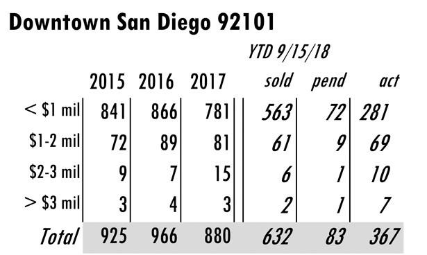 OCTOBER Issue Downtown San Diego total MLS reported sales, active listings, month’s inventory supply, and median sales price** compared to the same period last year.