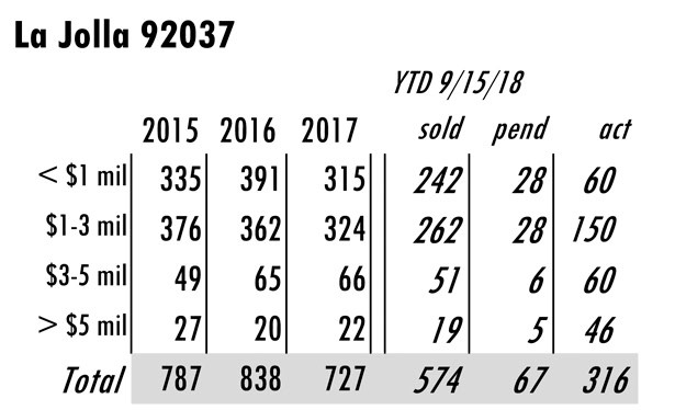 OCTOBER Issue La Jolla total MLS reported sales, active listings, month’s inventory supply, and median sales price** compared to the same period last year.