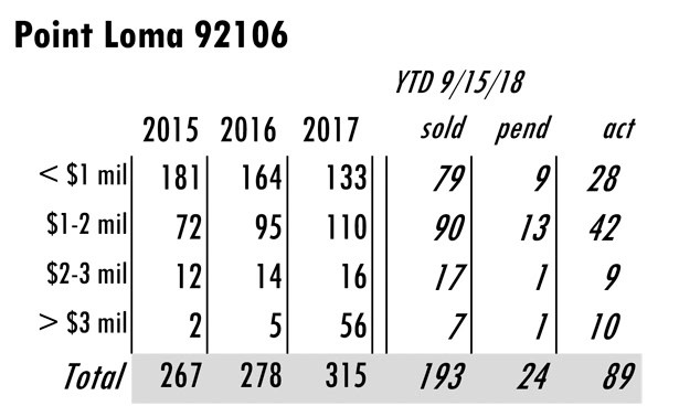 OCTOBER Issue Point Loma San Diego total MLS reported sales, active listings, month’s inventory supply, and median sales price** compared to the same period last year.