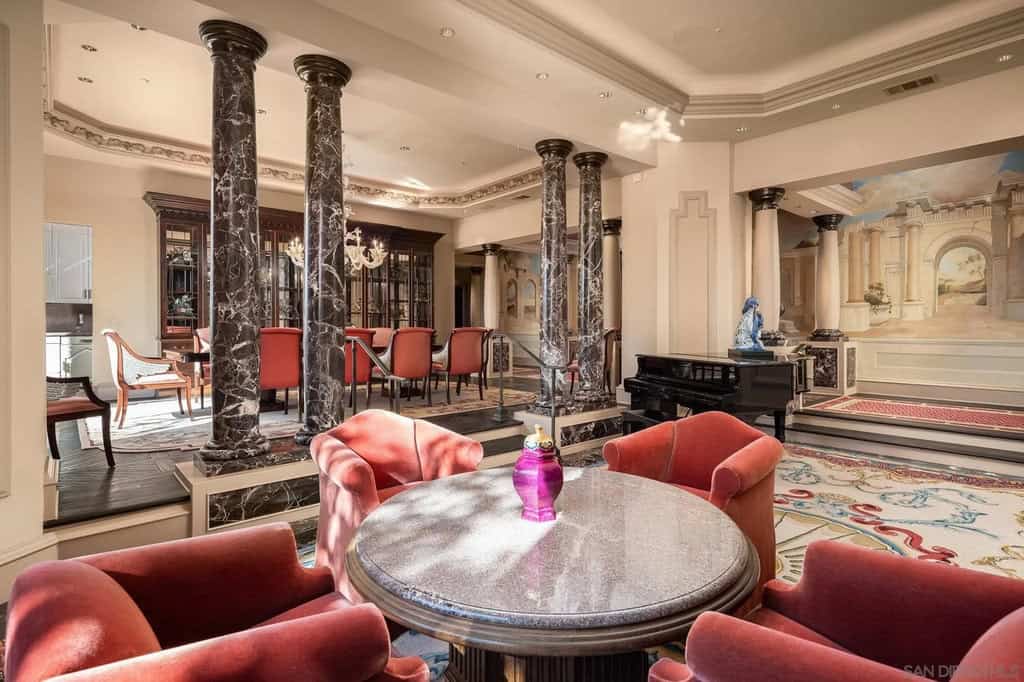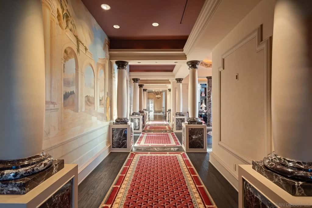 Awe inspiring are the words that come to mind as you approach “The Eagle’s Nest.” The quality of construction and grandeur of the estate is unparalleled. Resting atop one of the highest hills in Rancho Santa Fe on a private, gated street, this masterpiece features 360-degree ocean, golf, and mountain views, impeccably manicured grounds, and materials sourced from around the world. Upon entering the home, the sheer scale and beauty are breathtaking. The home features a home theater, two-story library, roof deck, numerous balconies, fountains that rival the Bellagio, gym, private guest quarters, and so much more. Pictures truly don’t do this estate justice, one must see the home in person to appreciate just how spectacular it is.