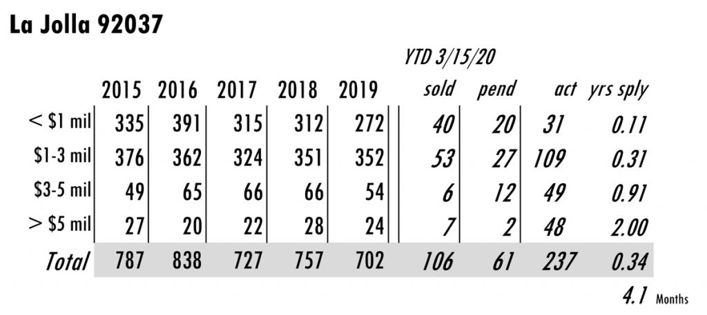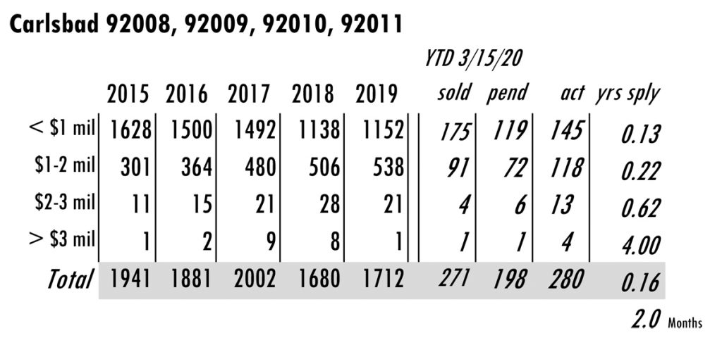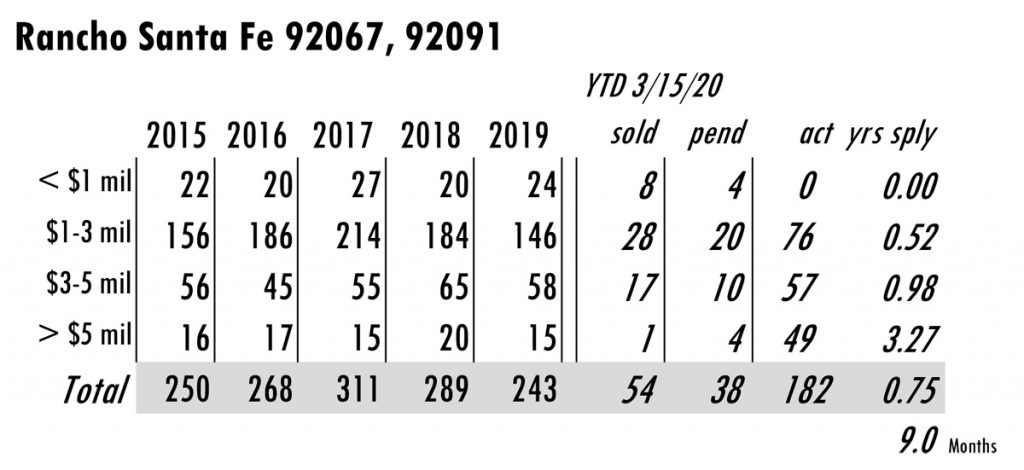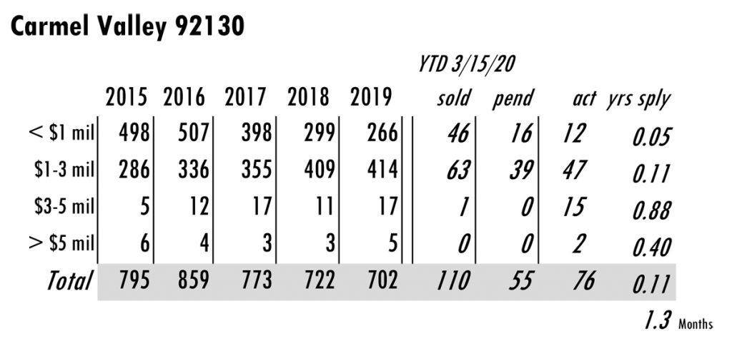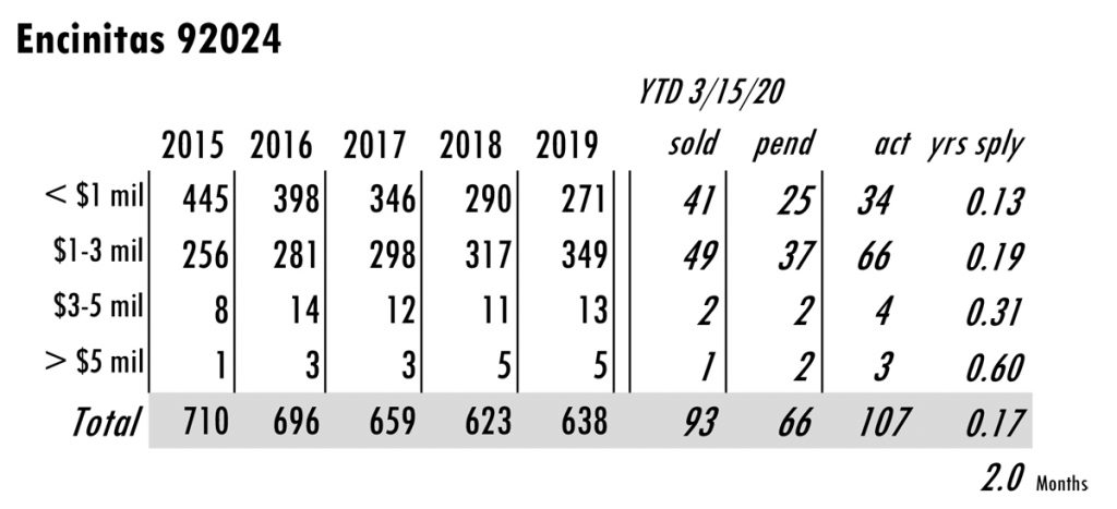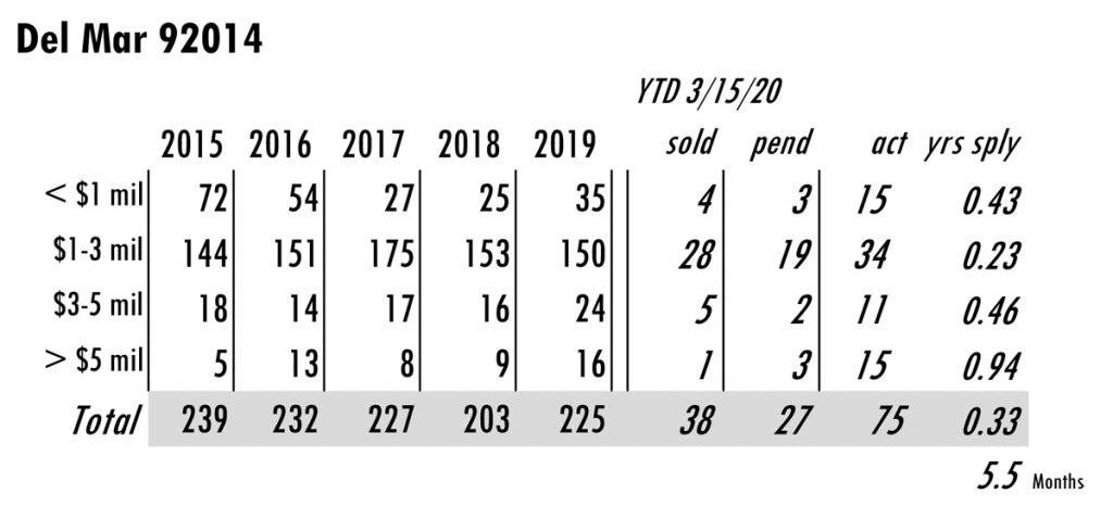 Based on MLS data from these zip codes, 92067,92091,92014,92037,92130,92118,92024,92127,92128, 92008,92009,92010,92011,9075,92064,92101 for the period of 1/1/2004 – 3/15/2020. **median sales price ytd 2020 from SDAR